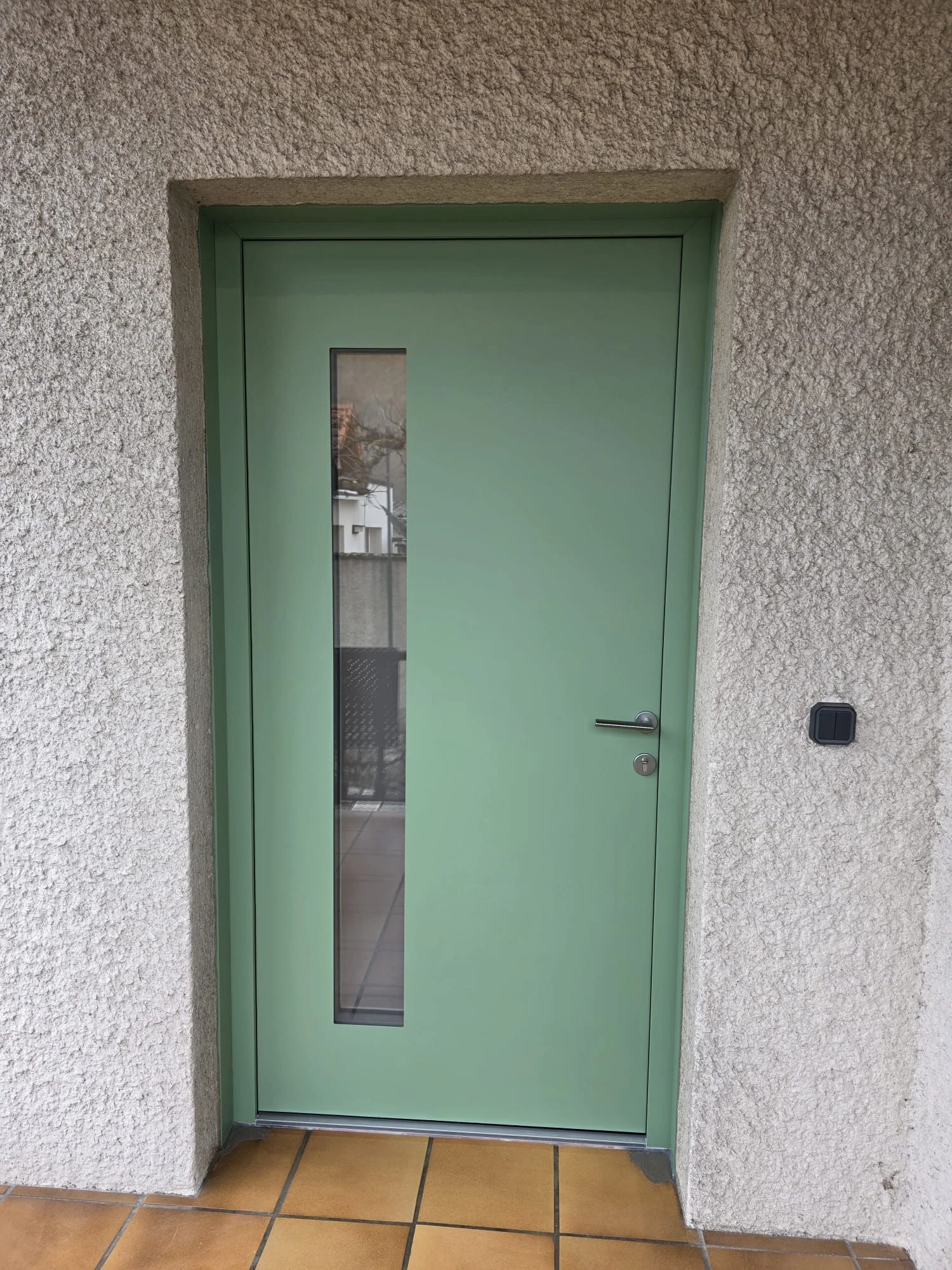 Installation d’une porte d’entrée en aluminium sur mesure réalisée par SMC Aménagement à Conflans-Sainte-Honorine. Cette photo illustre la pose soignée d’une porte d’entrée moderne, conçue en aluminium Made in France, offrant une excellente isolation thermique et acoustique. Le chantier met en avant le savoir-faire artisanal et la précision des finitions : ajustement parfait du dormant, étanchéité renforcée et fixation sécurisée pour une performance durable. Grâce à son design contemporain et à son vitrage retardateur d’effraction, cette porte d’entrée améliore à la fois la sécurité et l’esthétique de la maison. L’installation respecte les normes en vigueur et garantit une haute performance énergétique, idéale pour réduire les déperditions de chaleur. Cette réalisation valorise l’habitat tout en assurant confort, protection et longévité. Faites confiance à un professionnel local pour la pose de votre porte d’entrée en aluminium à Conflans et dans les Yvelines.